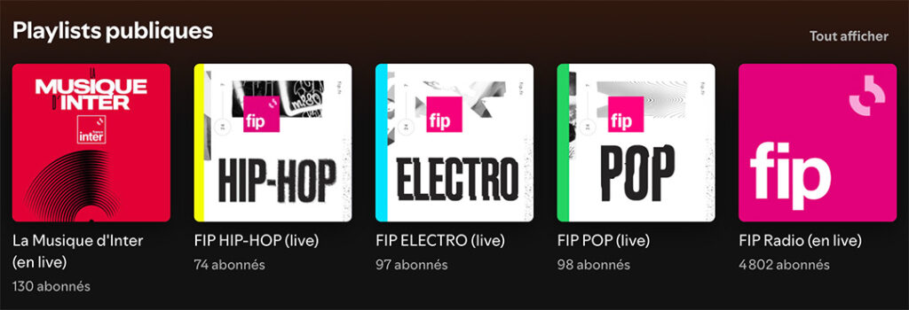 Matthou, le fan de Radio France, a également crée les playlists pour France Inter, FIP Hip Hop, FIP Electro et FIP Pop. Tout est accessible sur son profil.