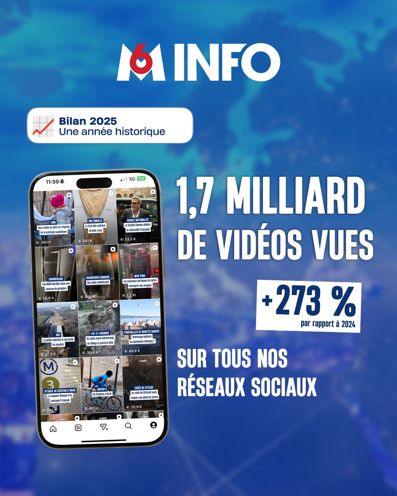 La marque info du groupe M6 affiche 1,7 milliard de vidéos vues sur l’année, soit +273 % en un an.